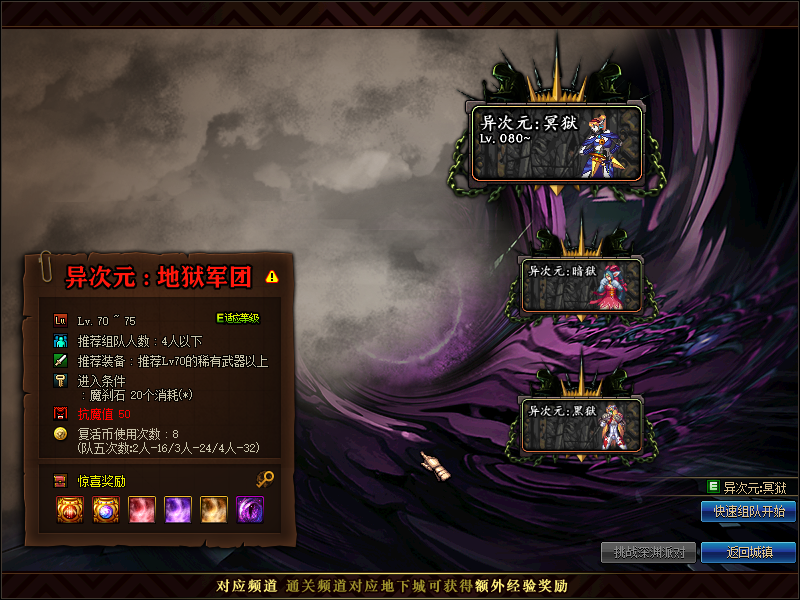 格栏迪深渊可掉落75-80SS装备,为新人上线后进阶的装备