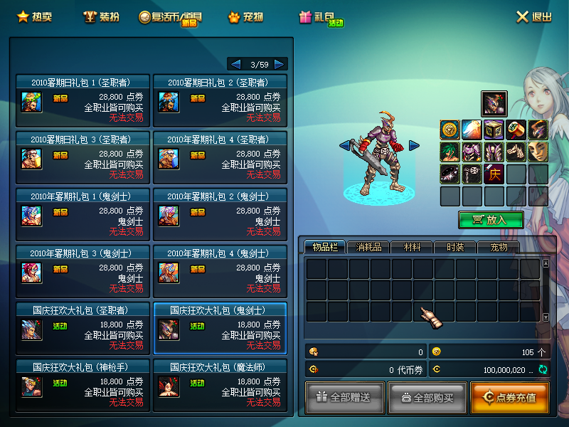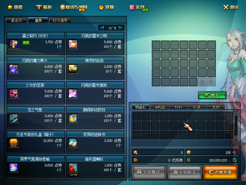 现在说进游戏了,进游戏点击赛利亚完成新手任务顺便接上左右槽的任务点击赛利亚直接完成,接着专职,在商场购买黑钻疲劳等于1716.泡点1分钟100点。