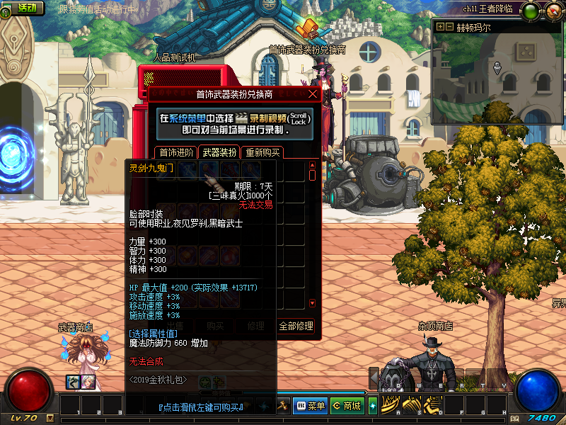 所有装备升级 全在这里 每个NPC名标明防具,武器,宝珠,杂货,首饰,武器装扮兑换。 请仔细阅读设计图